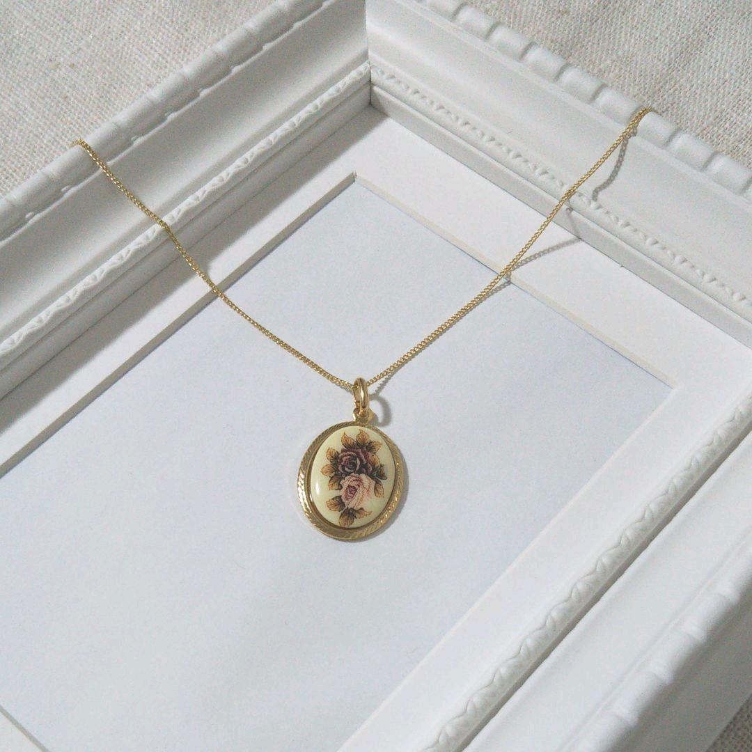 日本製ヴィンテージガラスのネックレス 2輪のバラ