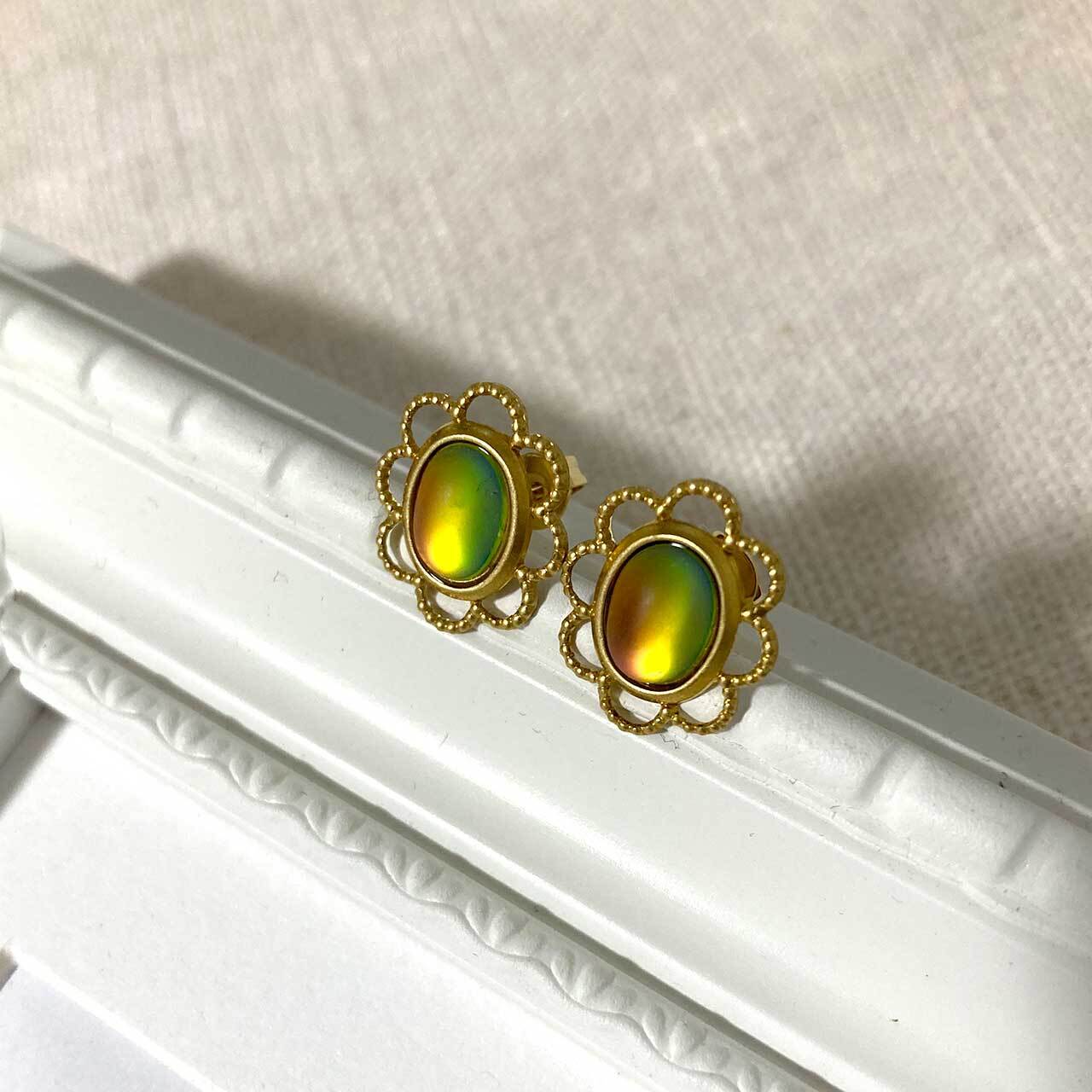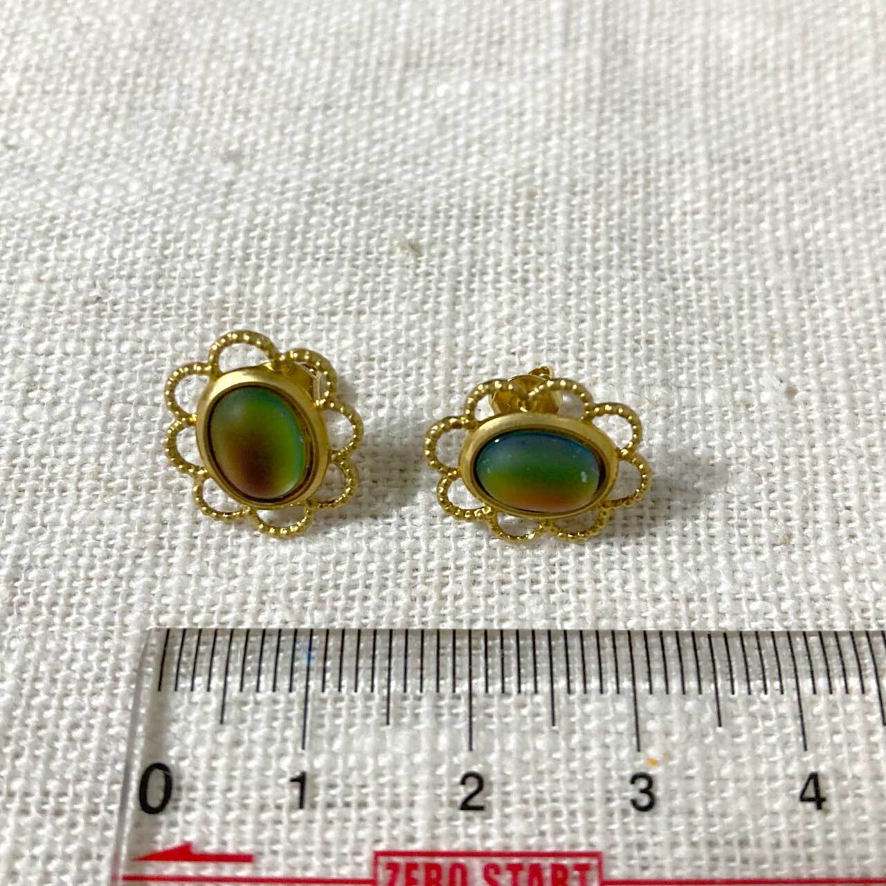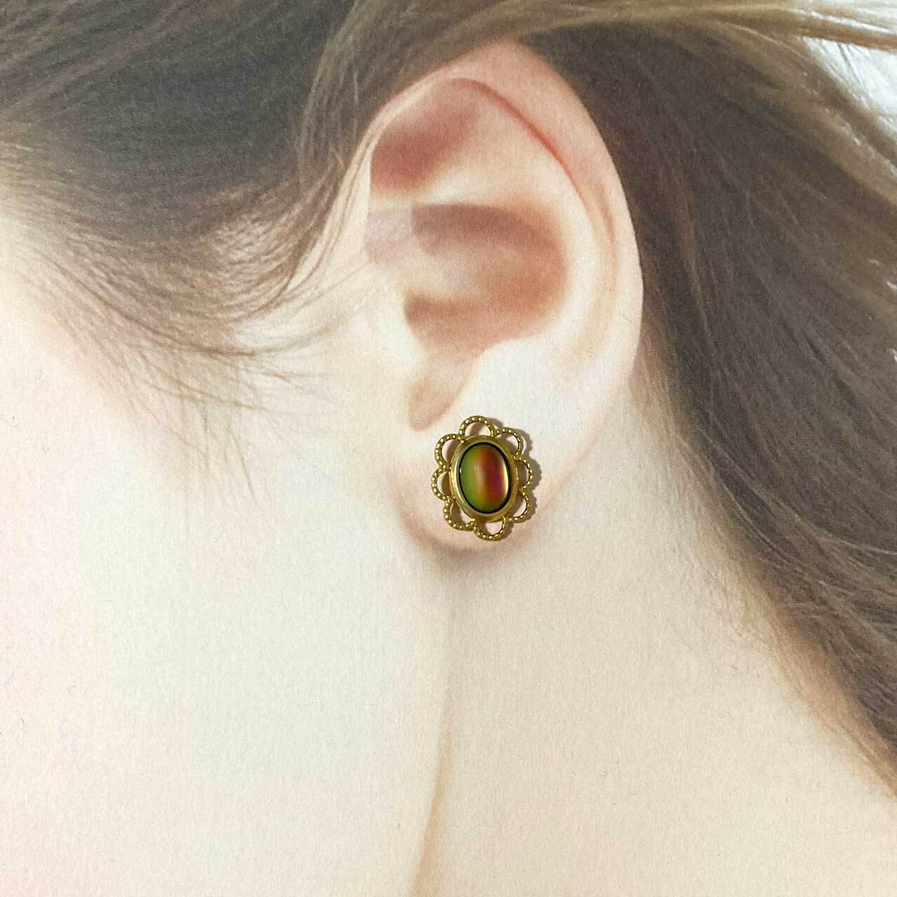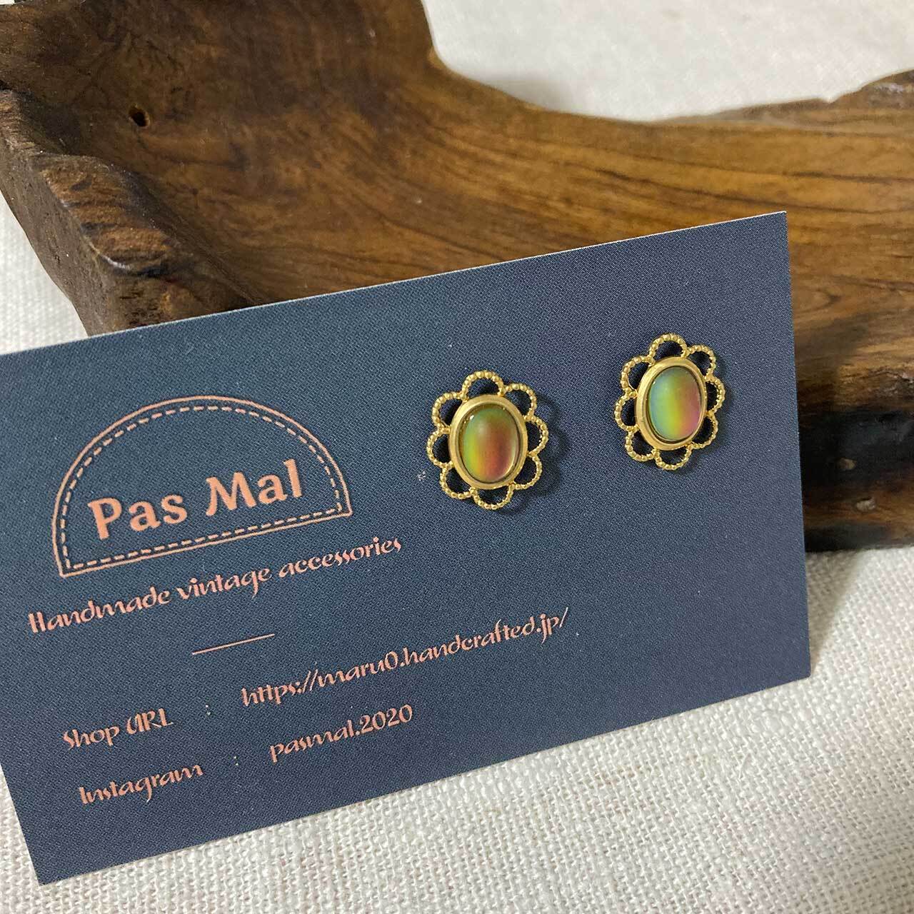 チェコ製のヴィンテージガラスを使用した、小ぶりでかわいらしいピアスです。