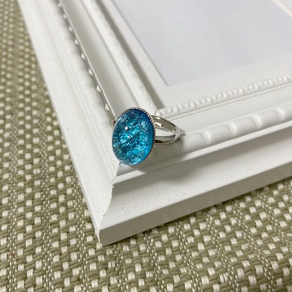 チェコ製ヴィンテージガラスのリング ファイヤーオパール風 アクア