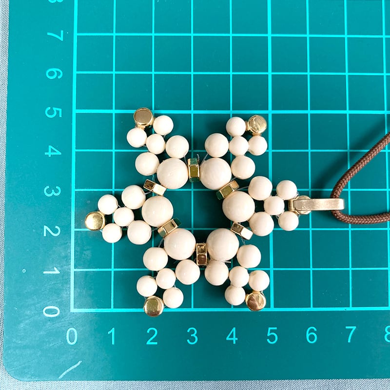 1970年代のヴィンテージラクトパーツで作った雪の結晶型のペンダントです。
